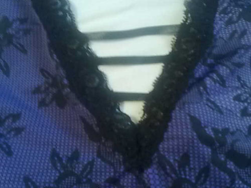 In photographs, the three ribbons that stretch over the cleavage look hot. In real life, the halter-styled top really offers no support, and as my breasts tend to fall outward, the piece just kept stretching. I looked much flatter than I actually am. A bra remedies this but who wants to wear a bra with her chemise? Additionally, even my C cups felt ridiculously heavy as the halter pulled down against my neck and it was nearly impossible to find a good length at which to tie it and to duplicate that tying length when wearing it on different occasions. So, to make this work, I’d imagine you’d need Ds or DDs but I wouldn’t want to deal with the strain on your neck. Some supportive stitching wouldn’t hurt because this piece really has no shape.